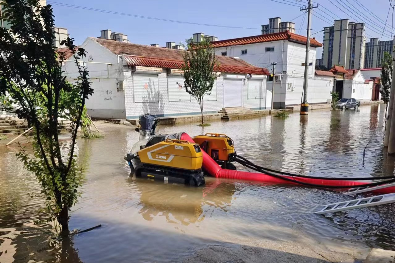 近日,受持续强降雨影响,河北廊坊霸州市城市内涝严重。闻“汛”后,徐工子母式排水抢险车PS30F4连夜奔袭,驰援排涝抢险!